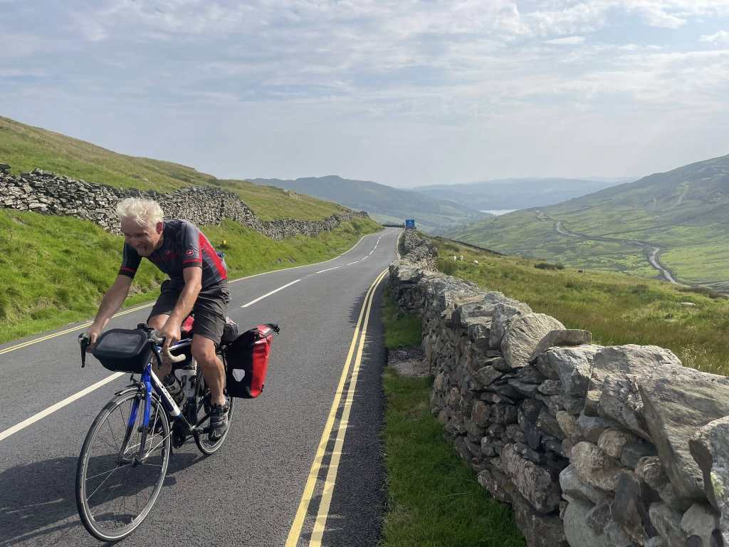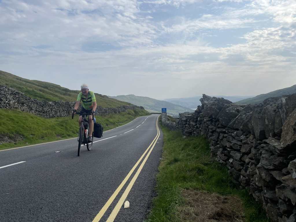It’s not the usual route for a LEJOG, but the alternative is the pass at Shap and I’ve ridden that before too, but rejected it in favour of Kirkstone. Kirkstone is steeper but it’s much more enjoyable: a winding road, beautiful scenery, varied gradients and a fabulous view from the top over the Lakes. It’s a hell of a descent, and it’s a climb Tim loved. So this is the way we will go. We’ve been building up to this pass for days, and now it’s today.