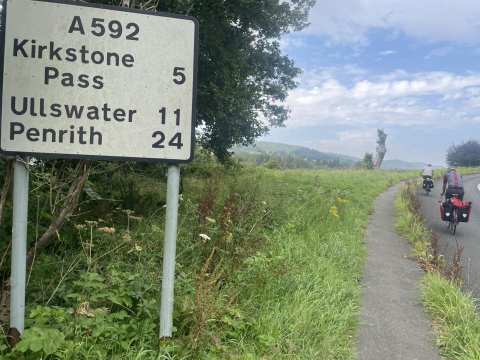 Today is the big one: we will be crossing the Kirkstone pass. The Lake District hills are clearly visible across Morecambe bay where we start the day, and they look dauntingly big. I’ve cycled over the Kirkstone pass three times, a couple of times with luggage, but never with a load this heavy. The others have never ridden it.