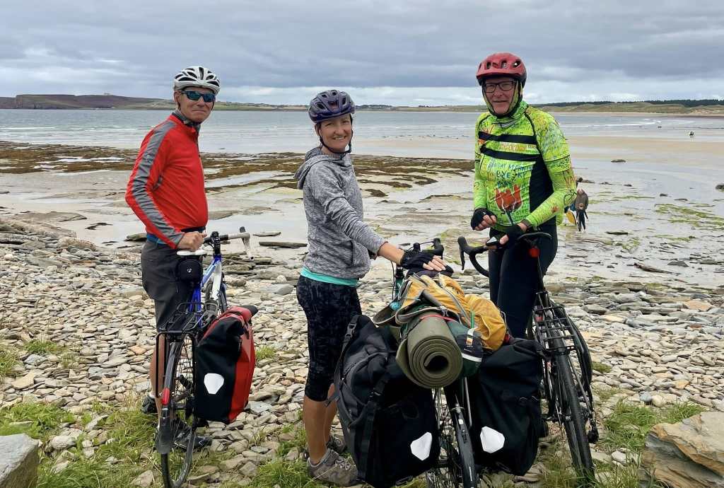 Along the long straight road out of Thurso we go, past Dunnet Bay, where Mark rides out across the sand to dip his wheel in the sea, as we had all done at Mounts Bay on the south coast of England all that time ago. The settlements are ticked off one by one until we reach the junction that will tip us towards John o’ Groats and the end of our journey.