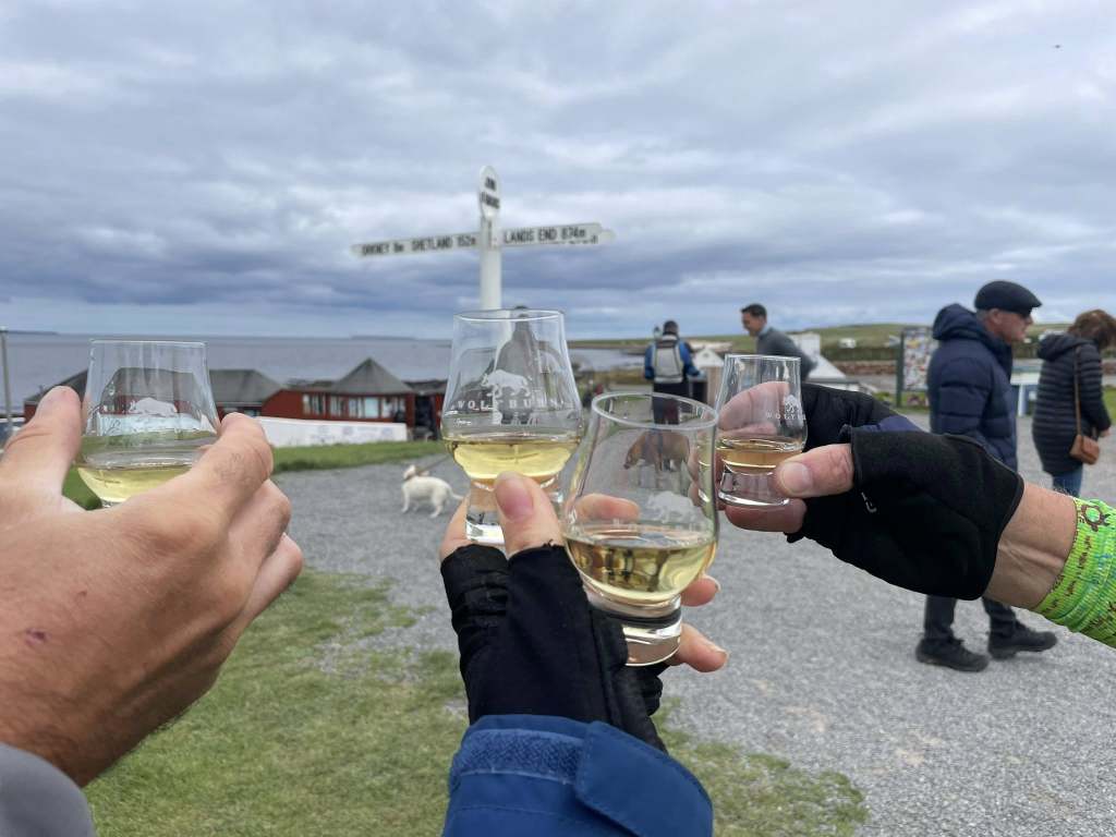 We spend a long time soaking it all in – it’s the perfect place for quiet contemplation, and we each have our own thoughts and feelings to work through. We raise one last pint to Tim in the Last Pub. There are logistics to work out, and another 20 miles back to Thurso, but for now we’re staying put. Throughout the ride we’ve needed to keep on making forward progress, but not any more. We can stay as long as we like. This one’s for Tim.